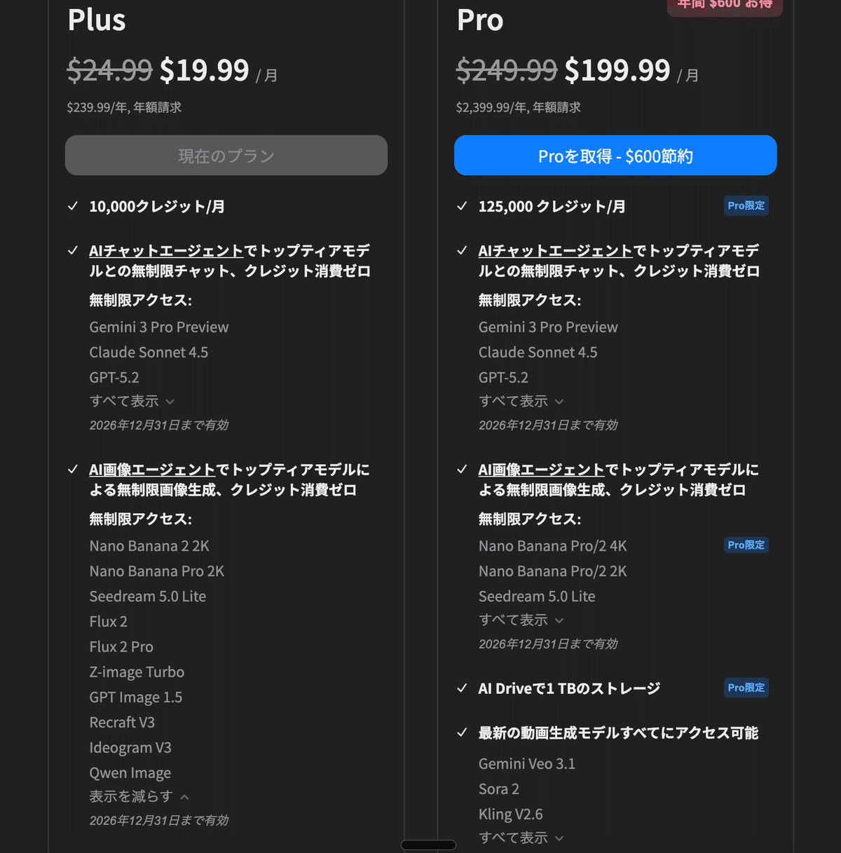 Nano Banana Proが登場した時は、「1年間使える」「無制限に使える」といった強気の売り文句でサブスクリプション契約を促すマーケティングが目立ちました。