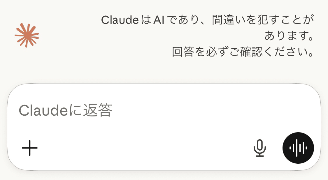 アプリ版Claudeのチャットを開くと、こんな文章が表示されます。
