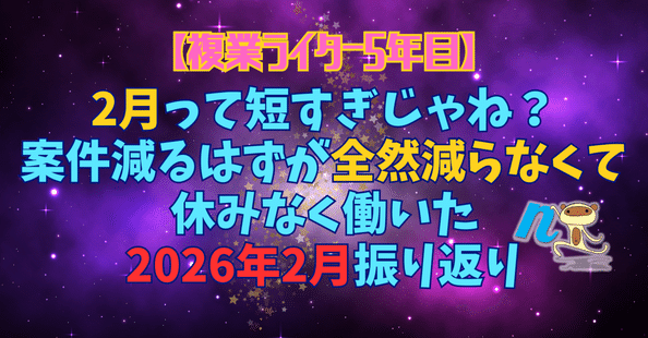 【複業ライター5年目】2月って短すぎじゃね?案件減るはずが全然減らなくて休みなく働いた2026年2月振り返り