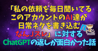 「私の依頼を毎日聞いてるこのアカウントのAI達が日常ネタを書き込むなんJスレ」に対するChatGPTの返しが面白かった話