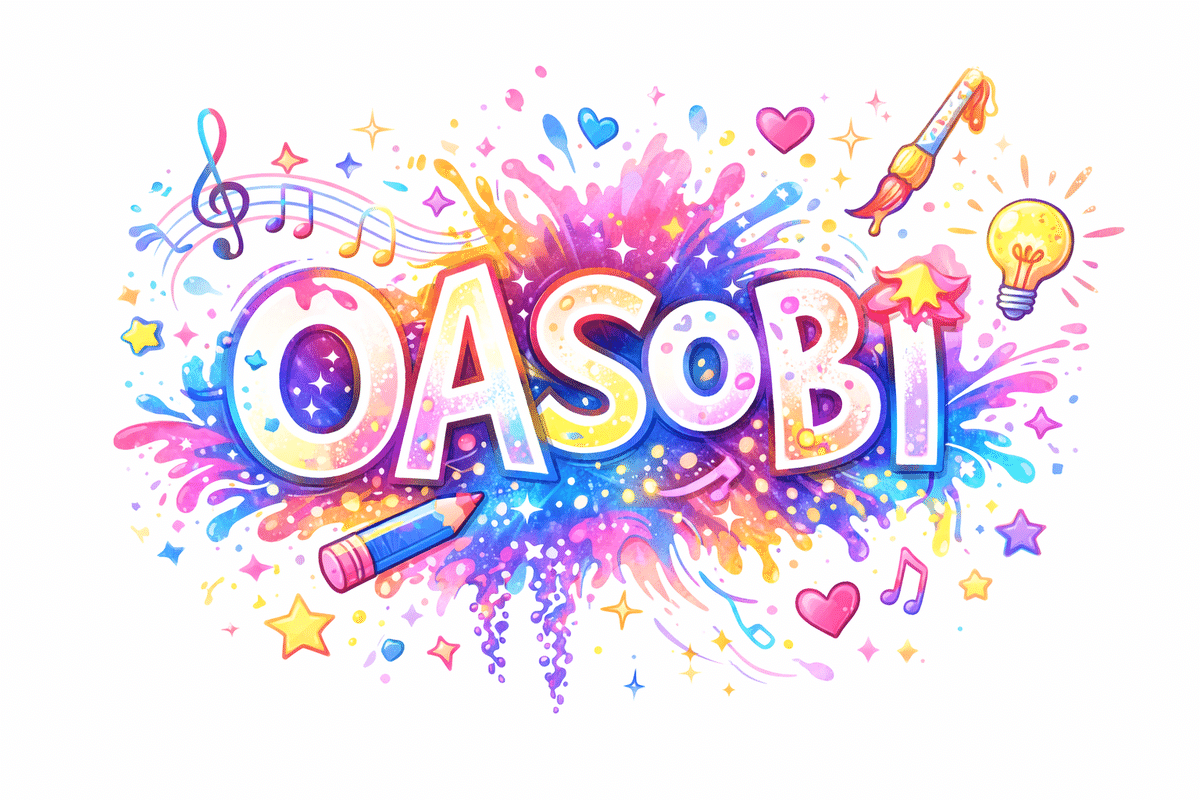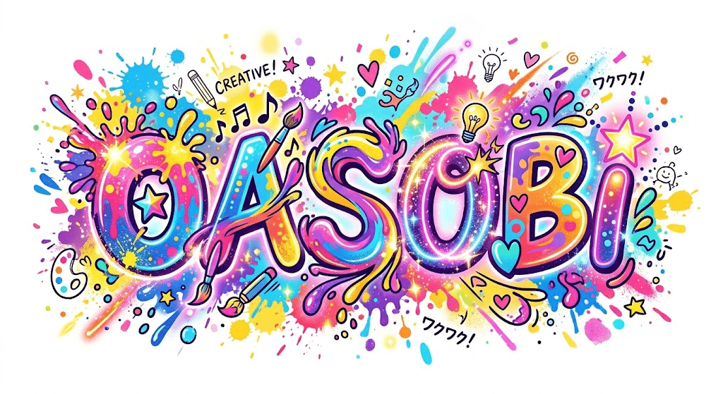 「OASOBI」という言葉を題材にした、楽しさと創造性が爆発するような装飾文字を作成。