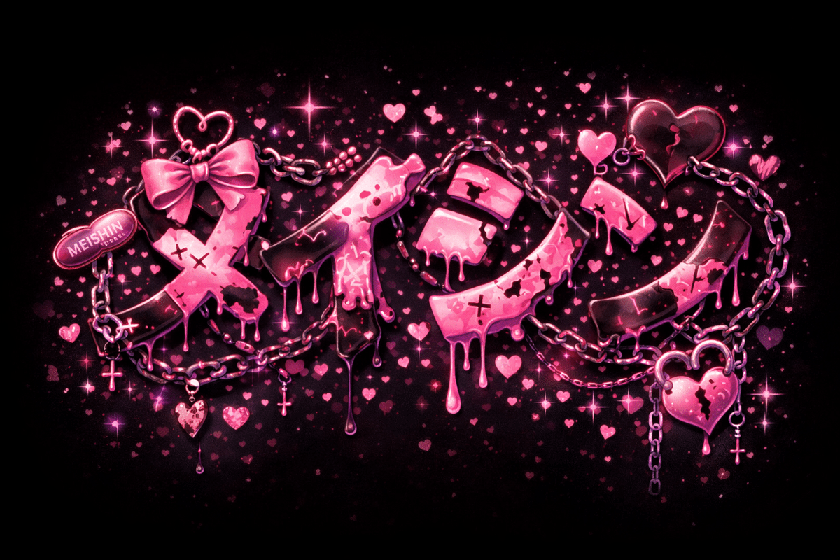 ハートやリボンなどの可愛いモチーフに加え、鎖・鍵・ひび割れなど“束縛”を象徴する要素を絡ませる。