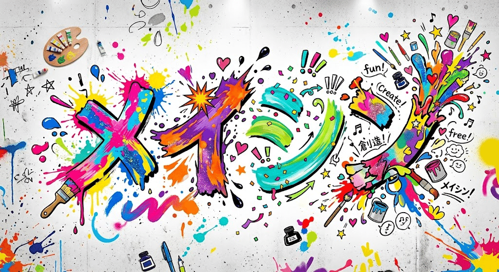 ・絵の具、音符、ペン、星、ハートなど「創作」を連想させる要素を自然に融合