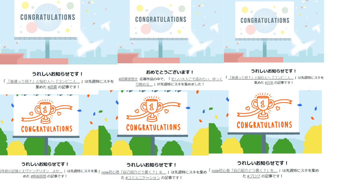 コングラが来た記事は、とりあえずnoteサイドのOKが出たという感覚になってきました。AIが判定しているらしいので、コングラが来たから安心とも言えません。