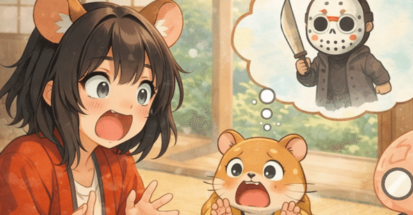 🌤️おはよう朝ふみ💌|13日の金曜日とは?ジェイソンの正体を想像して怖がるふみまる🐹と冷静すぎるミソマル🧠の朝ラボ日常