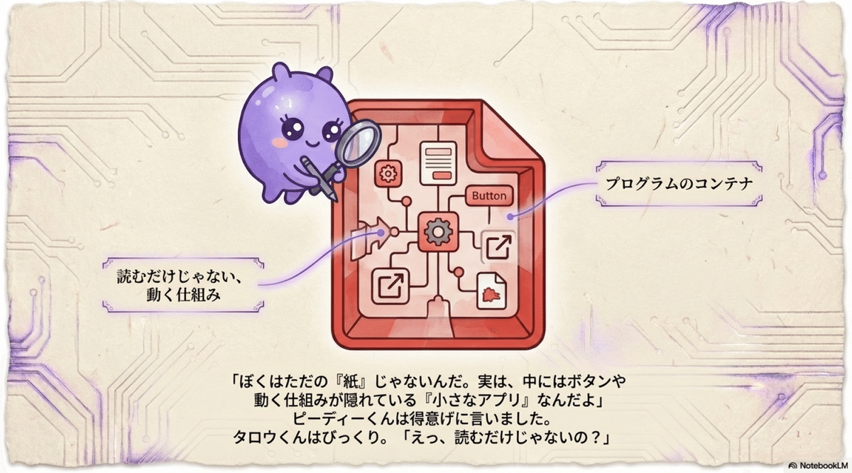 つまりPDFは、本質的には「小さなアプリ」のような構造を持っています。