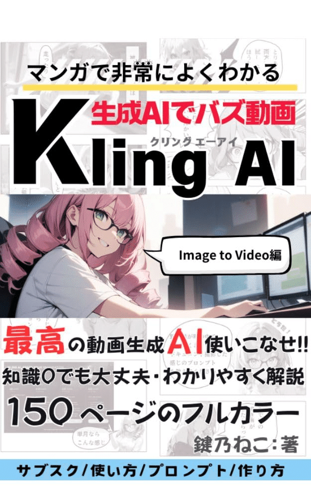 生成AIでバズ動画 漫画でわかる kling ai: 動画生成AIの使い方、初心者向けガイド動画生成AI「kling ai」を活用してバズる動画を作る方法を、漫画形式でわかりやすく解説した入門書です。専門知識がなくても理解できるように、ストーリー仕立てで操作や考え方を学べる点が特徴です。動画制作の基礎から、SNSで注目されるコンテンツづくりのコツまでを楽しく学べる内容となっており、初心者でも実践しやすい構成になっています。