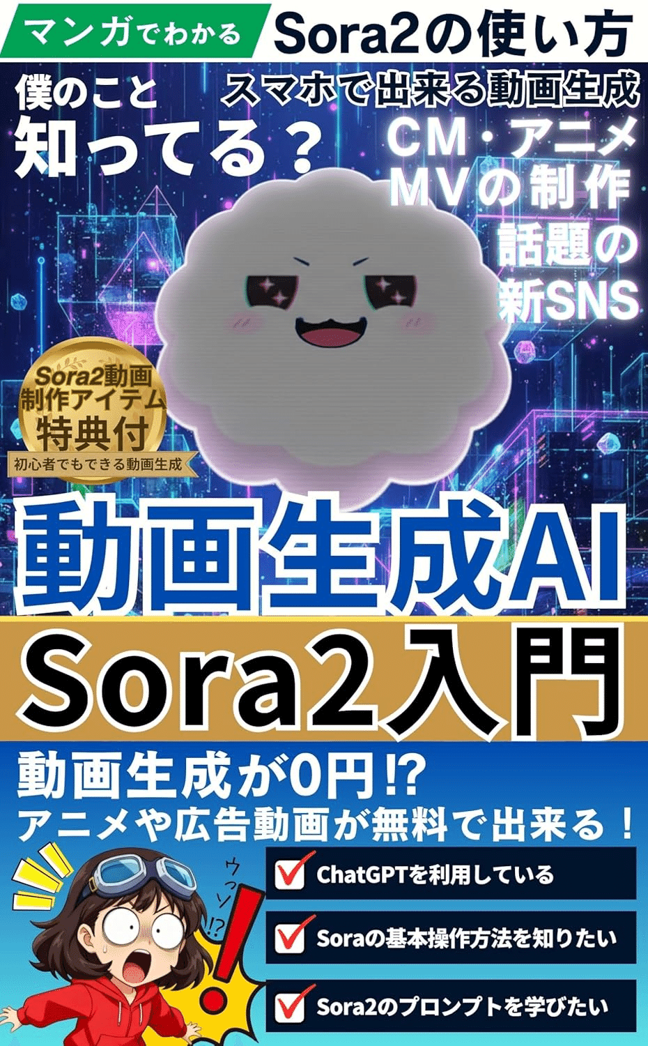 「動画生成AI「Sora(ソラ)」: OpenAI Sora 完全攻略ガイド」はOpenAIが開発した動画生成AI「Sora」を活用し、高品質な動画コンテンツを作成するための方法を解説した実践ガイドです。AIによる映像生成の仕組みから具体的な活用方法までを網羅し、初心者でも理解しやすい内容となっています。プロンプト設計や生成結果の調整方法など、実務で役立つノウハウが豊富に紹介されており、最新の動画制作手法を学べる一冊です。