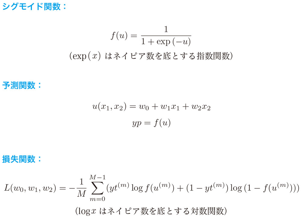 しかし、本特集で説明したモデルでは1次関数や2次関数だった、予測関数や損失関数に次のような数式が出てきて、問題を解く難易度ははるかに高くなります。