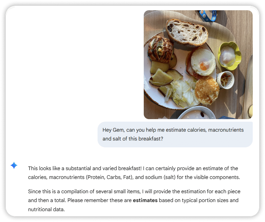 あとは、毎朝の食事の写真を「健康管理」Gem に送るだけ!