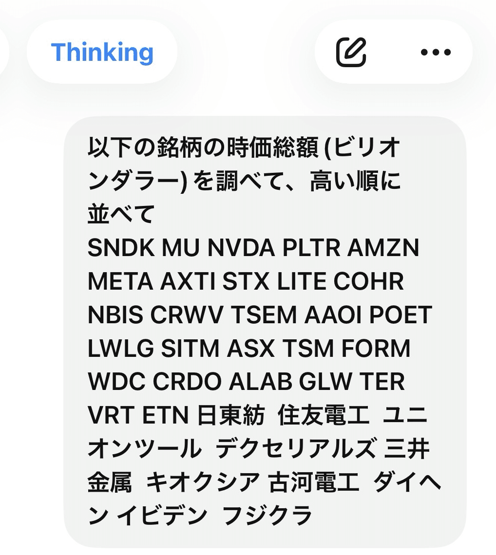 使ってよいのは、このメッセージで指定した銘柄名と、今この場で取得した外部ソースだけ。