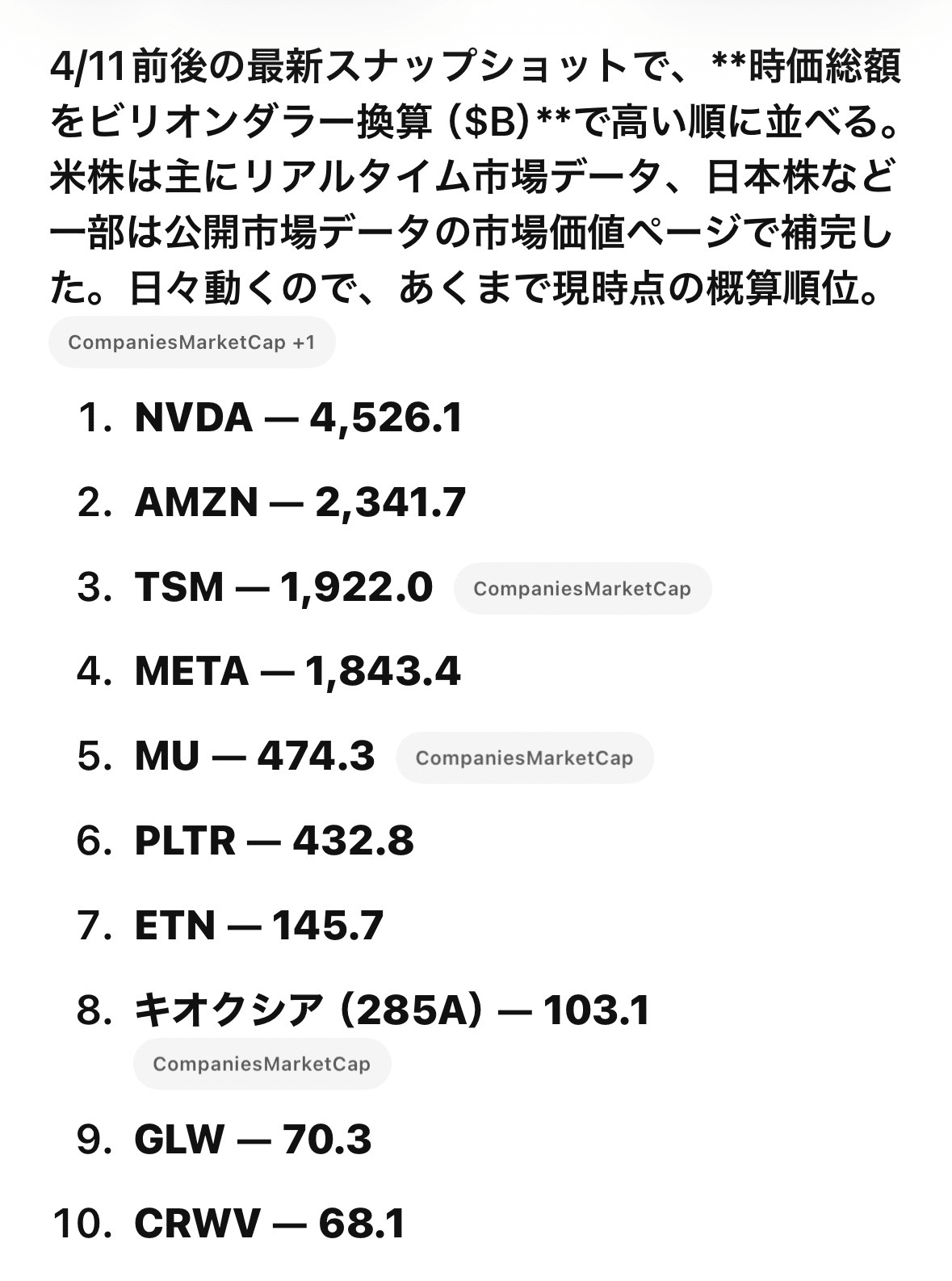 - 各銘柄は、今この場で取得した外部ソースだけを根拠にする