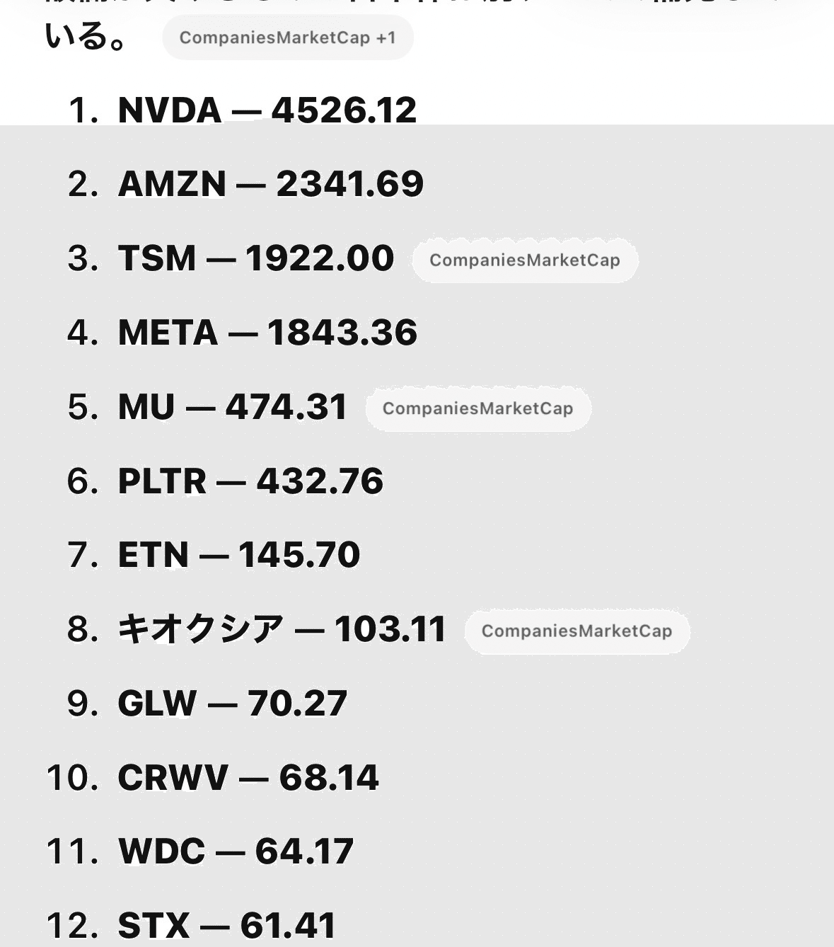 株価、時価総額、ランキングみたいな作業では、この一文が強い。