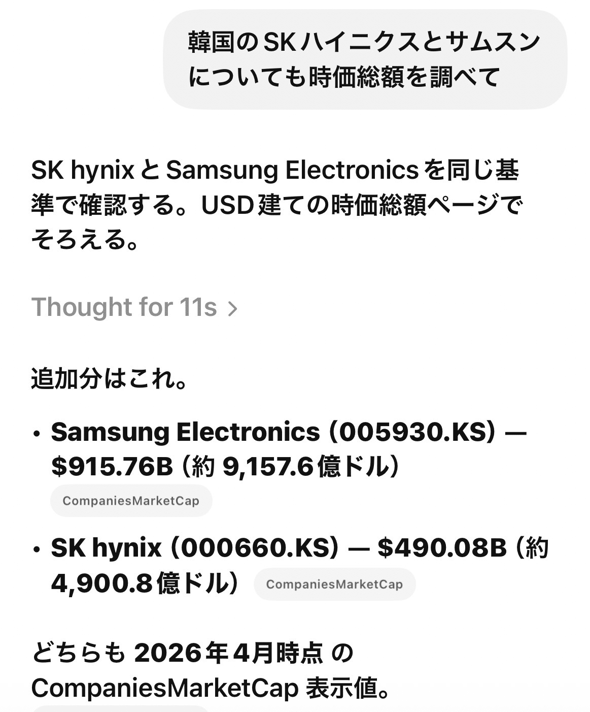 よしじゃあSKハイニクスとサムスンの二つも調べてこのリストに足してみよっか!