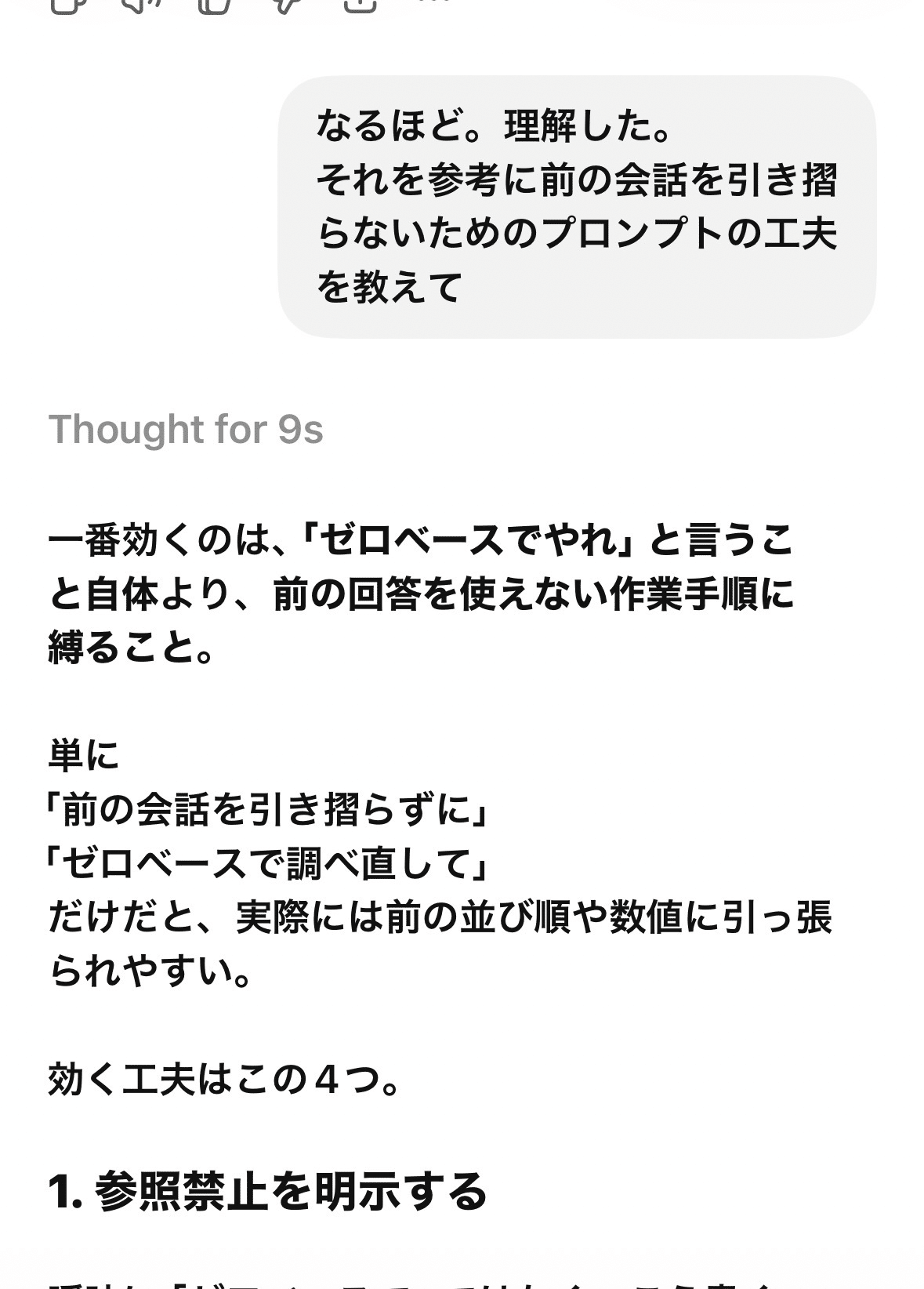 “要するに、前の答えにアンカーされて、ゼロベースでやり直さず、検証前のものを完成品として出した。