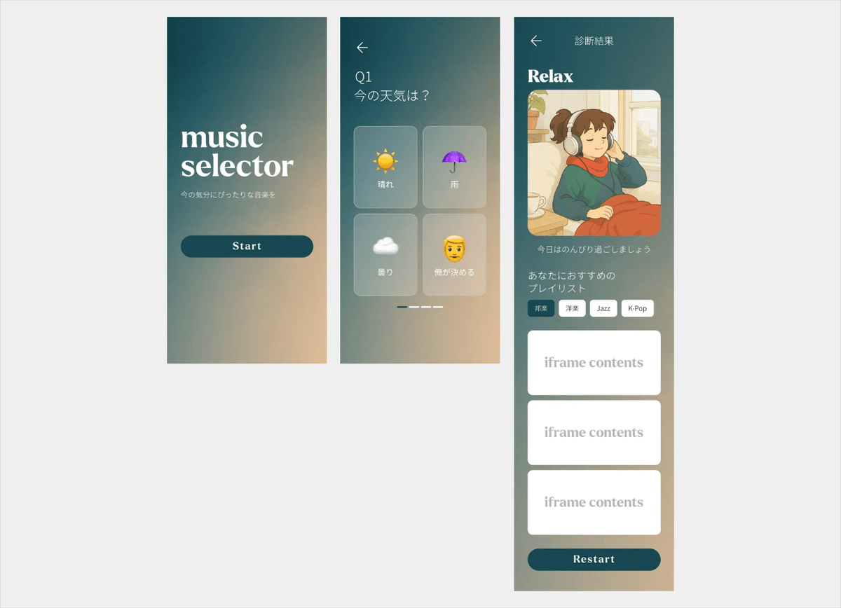 ただ、Cursorが出たタイミングで、ミュージックセレクターというWebのデモアプリを作ってみたり、身内で使えるその日やることを選ぶアプリを作ってみたりしていました。
