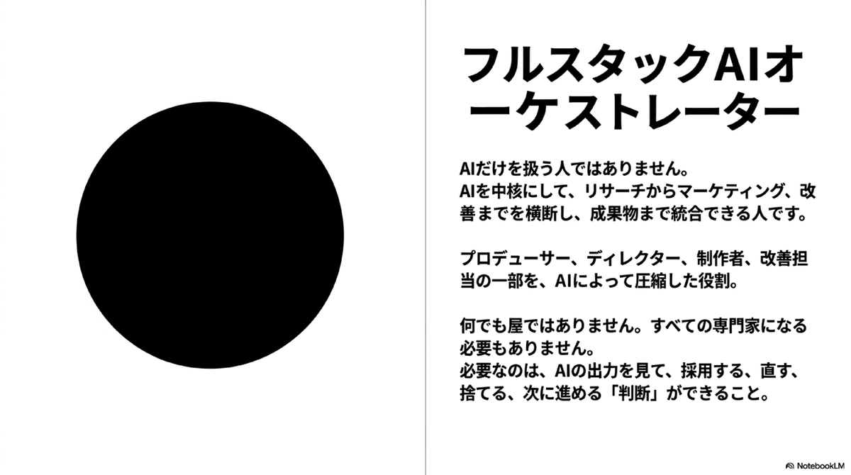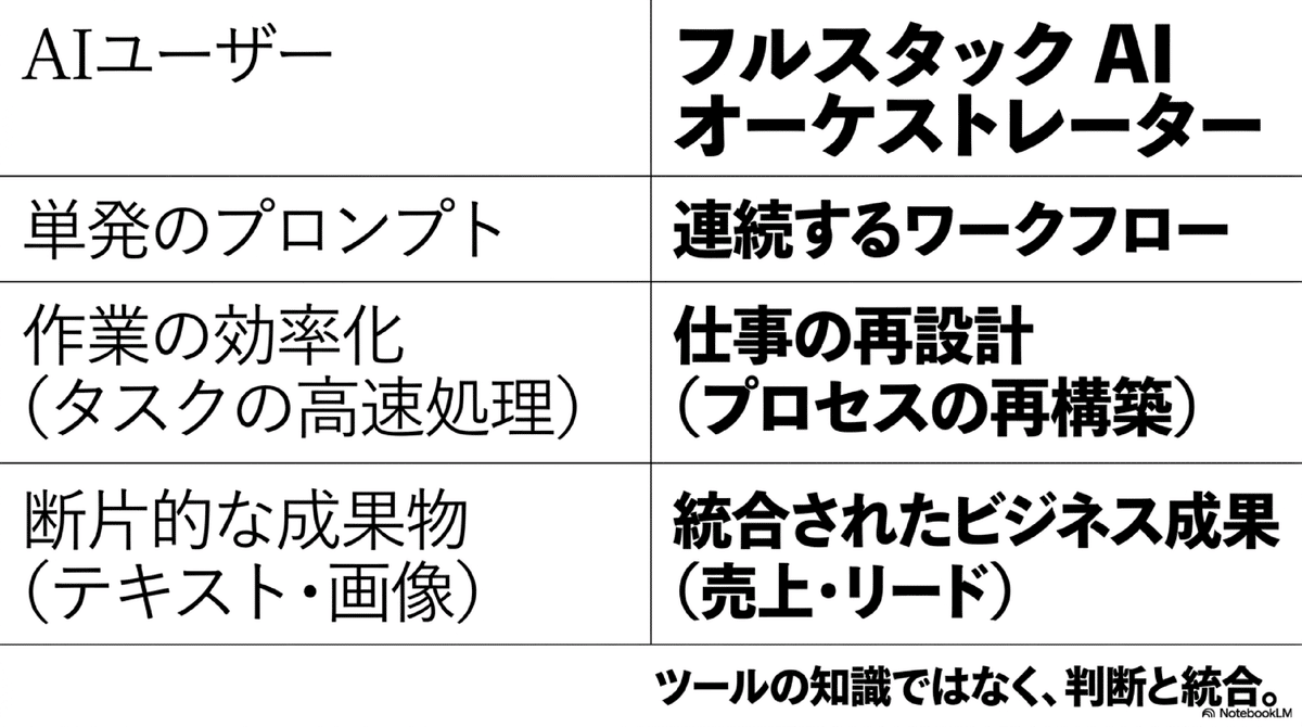 この新しい実務者像を、私は「フルスタックAIオーケストレーター」と呼んでいます。