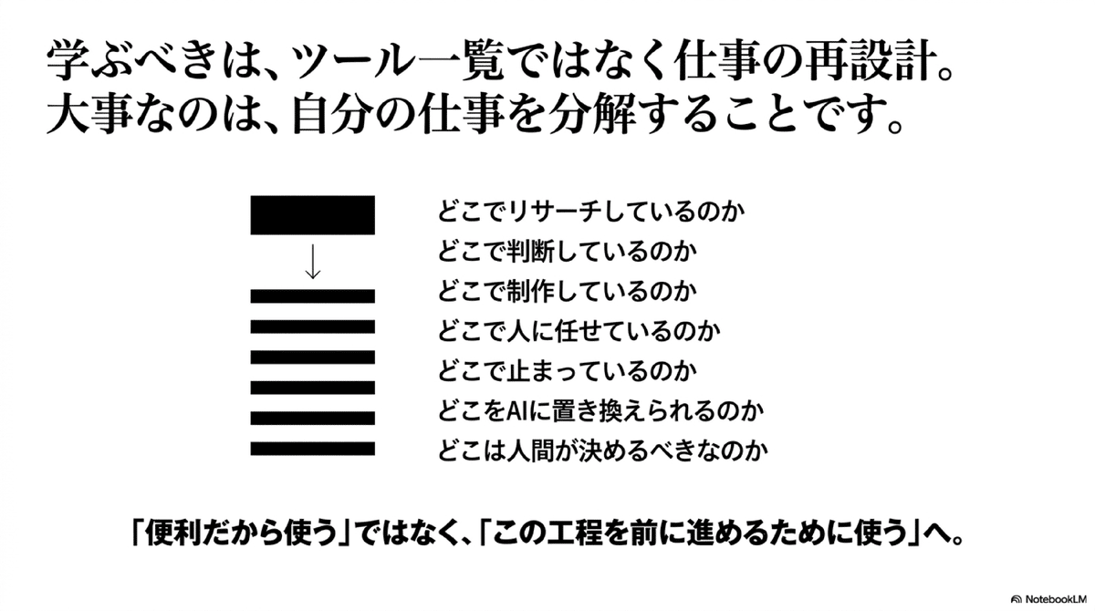 学ぶべきは、ツール一覧ではなく仕事の再設計