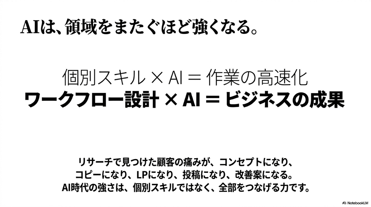 AI時代の強さは、個別スキルではなく、全部をつなげる力です。