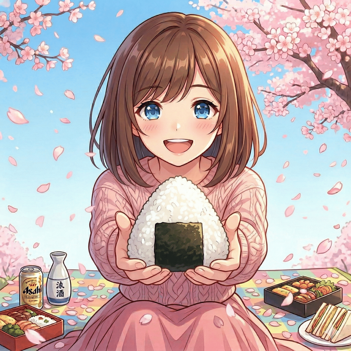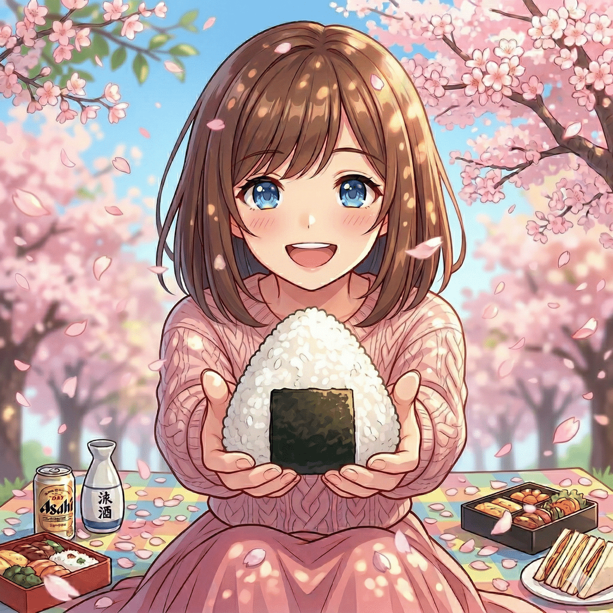 桜が散る前にお花見したい‼️一緒におにぎり食べましょう♡こあらさんのプロンプト♡Gemini