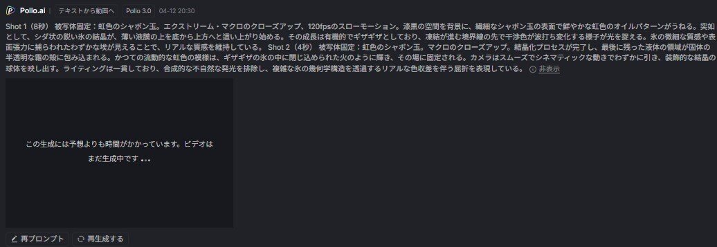生成する: 出てきたプロンプトを、最新最強の動画生成モデル「Pollo 3.0」にそのまま投入!