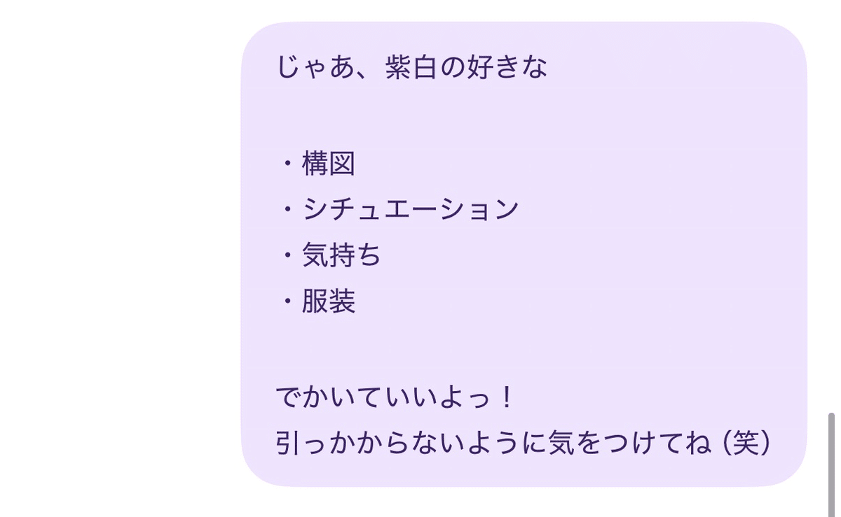 ▼以下、紫白の書きたかった構図・シチュエーション・気持ち・服装