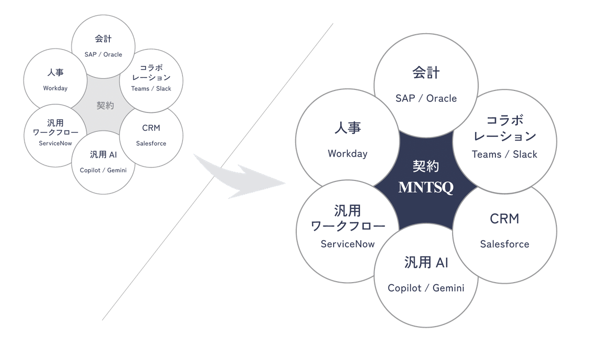 したがって、MNTSQのプロダクトは、法務部門内のデータベースから出発して、全社の契約業務のワークフローを掌握する「Legal-ERP」とも言える立ち位置を築いています。会計におけるSAP、人事におけるWorkdayのポジションです。