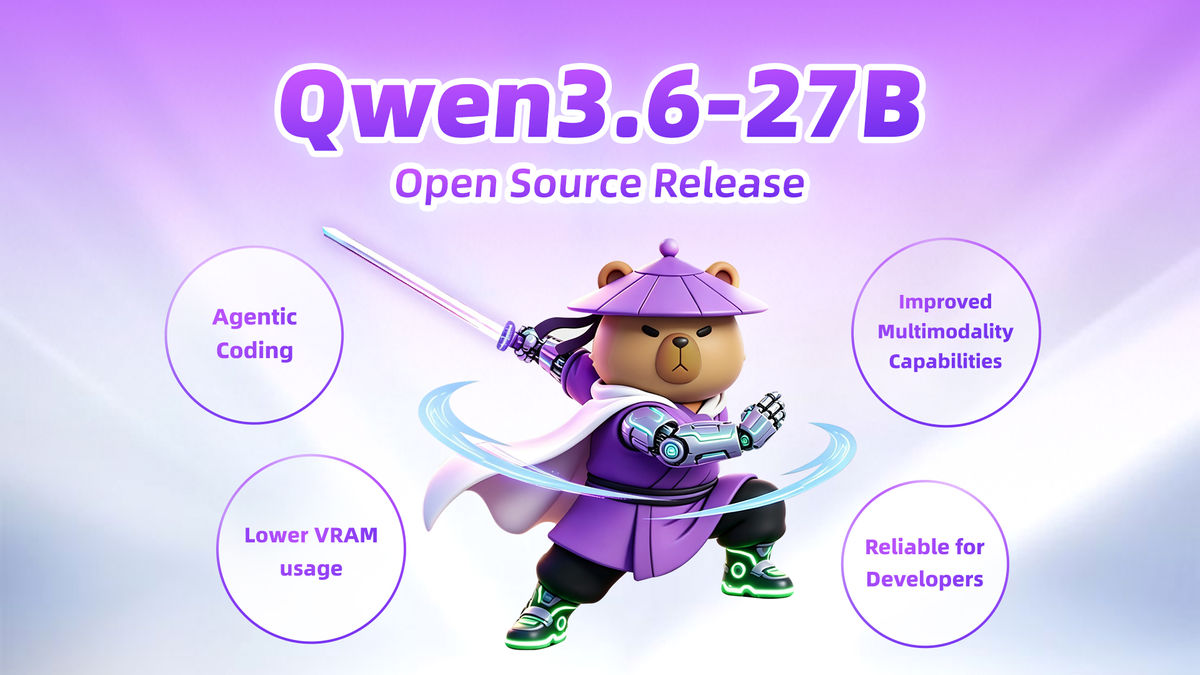 中国のAI企業・AlibabaのAI研究チームであるQwen(Tongyi Lab)が270億パラメータのマルチモーダルAIモデル「Qwen3.6-27B」を公開しました。ライセンスはオープンなApache License 2.0で、商用利用も可能となっています。
