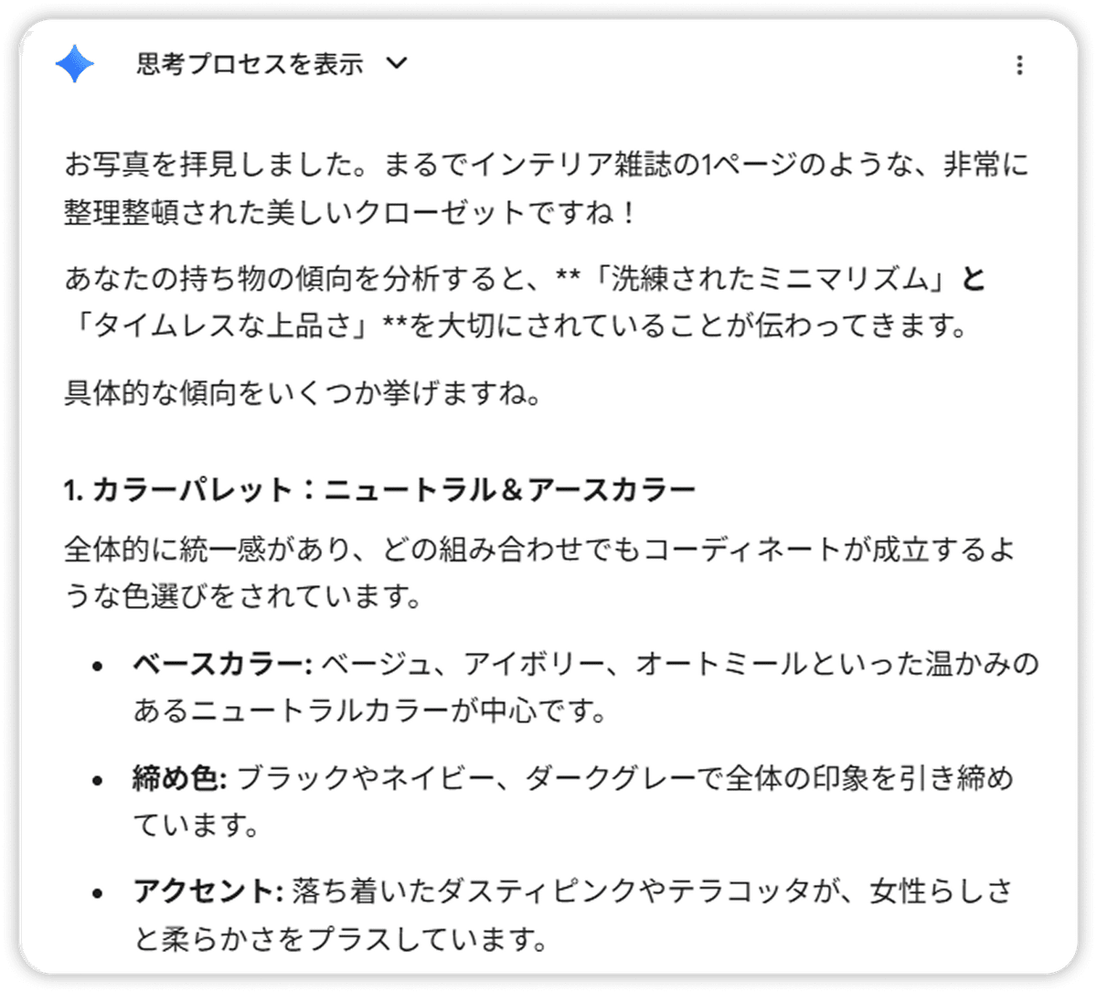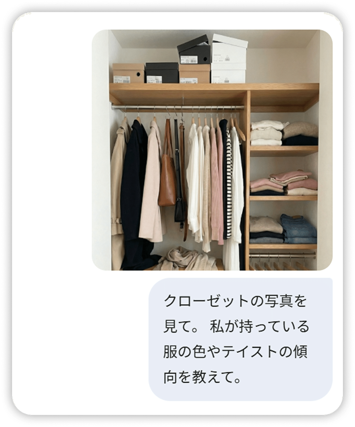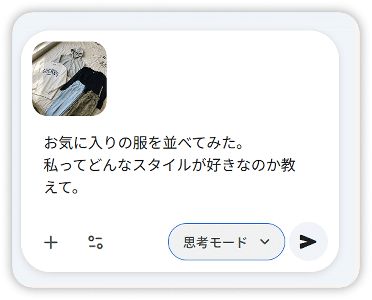 Gemini にクローゼットの写真を送るだけで、自分では気づかなかった「私らしさ」も発見できますよ。