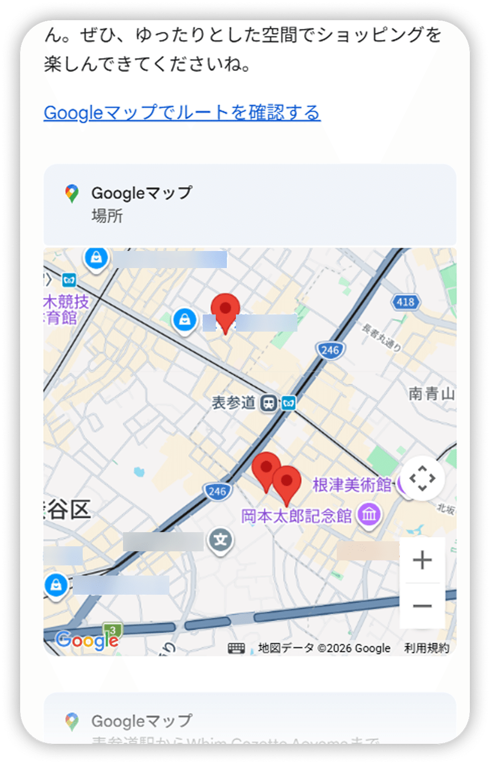 お店が決まったら、Google マップと連携してショッピングルートも確認できます。