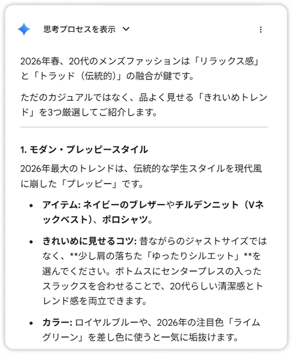 • 記事の主眼はニュースというより、Gemini とファッションを組み合わせた楽しみ方の提案・まとめにある。