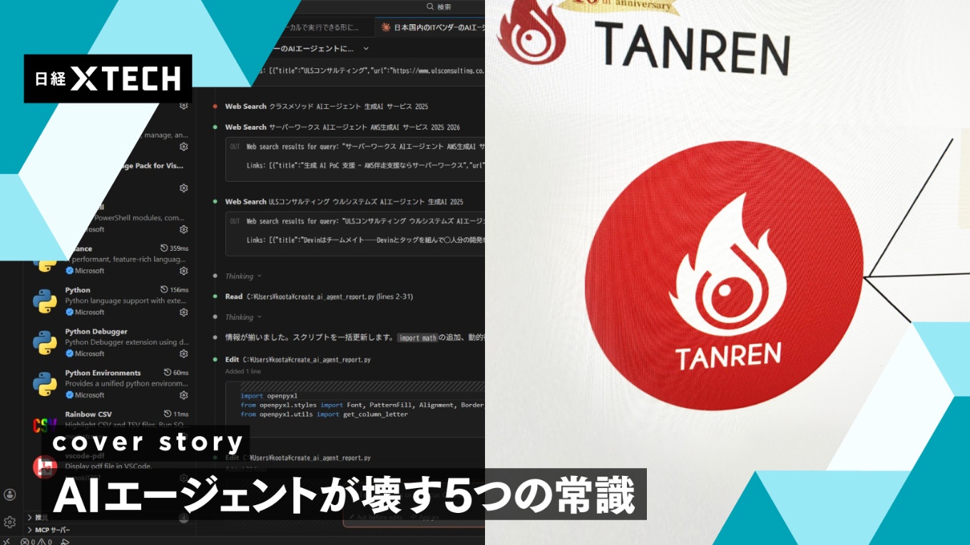3人という少人数で事業を展開するSaaS(ソフトウエア・アズ・ア・サービス)ベンダーのTANREN(東京・千代田)が、AI(人工知能)エージェントを駆使してこれまでの業務の進め方を壊している。1人当たりのAIエージェントの稼働時間を労働と捉え、5分の指示で5時間働かせている。AIエージェントが労働時間の常識を覆しているのだ。