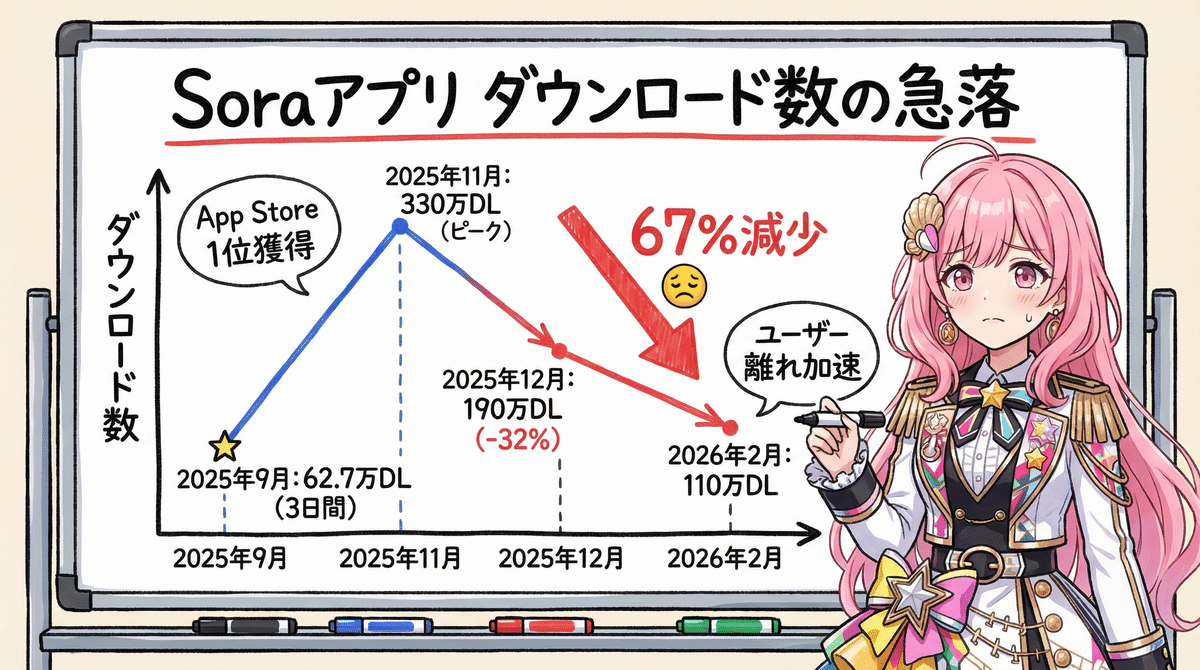• OpenAIが動画生成モデル「Sora」を“切った(提供・方針を変更した)”背景として、競争環境(特にAnthropic対抗)と事業戦略の見直しが論点になっている。