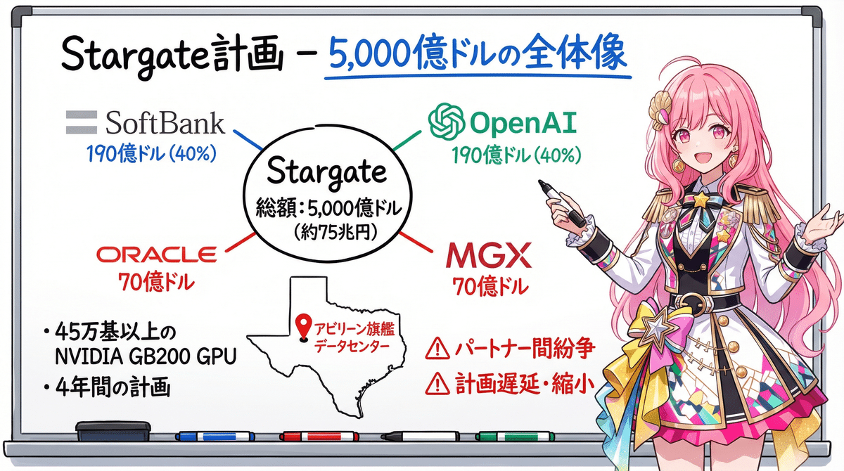 🔥 Stargate計画 ─アビリーン拡張はキャンセルだが、全体としては縮小版で継続中。パートナー間の紛争と信頼性問題が課題