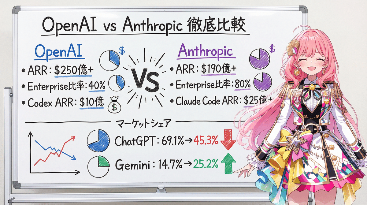 Anthropicのエンタープライズ比率80%に対して、OpenAIは40%。