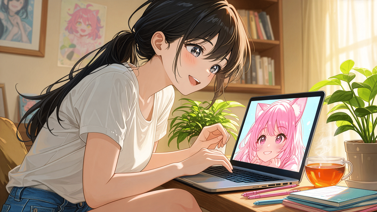 テキストを入力するだけで高品質なアニメ風イラストが生成でき、キャラクターデザインから漫画制作まで幅広く活用されています。