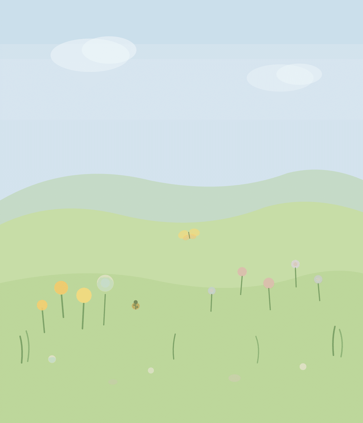 雲と綿毛の薄い色を上下に入れていることで、見る人に落ち着きを与えます。