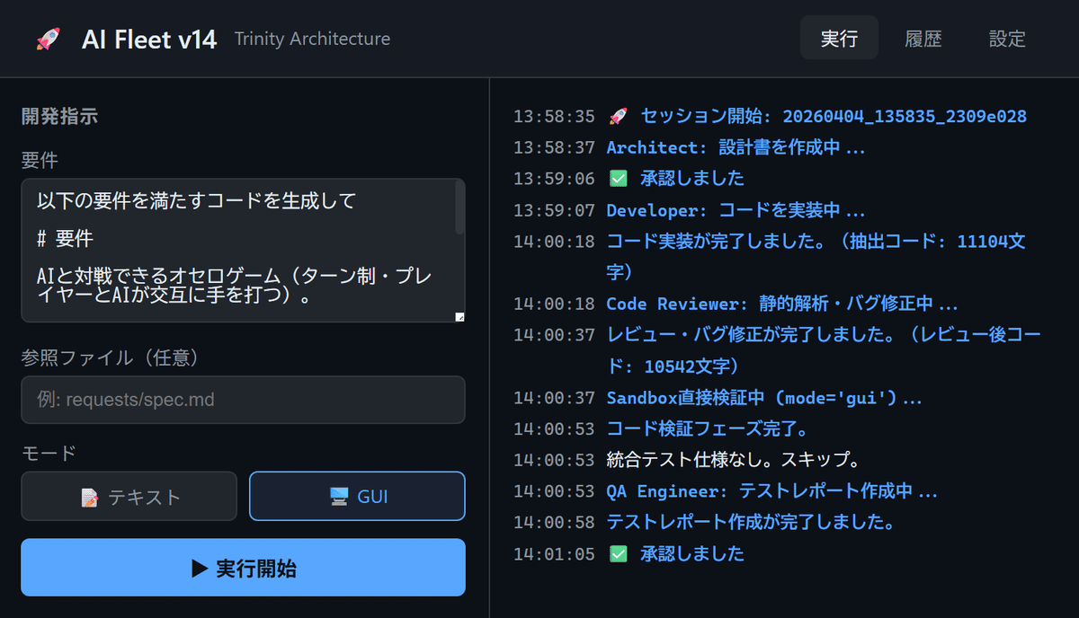 ユーザーの要件を元に GPT-OSS 120Bでコード設計書を作成し、その設計書を元に Gemma 4 がコードを生成します。