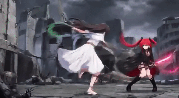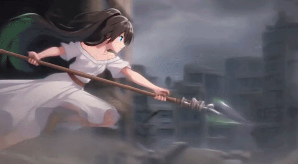 結衣菜がちゃんと結衣菜のまま動いてる。白いワンピース、ロングポニーテール、槍。全部そのまま。しかも戦闘の動きがめちゃくちゃかっこいい。