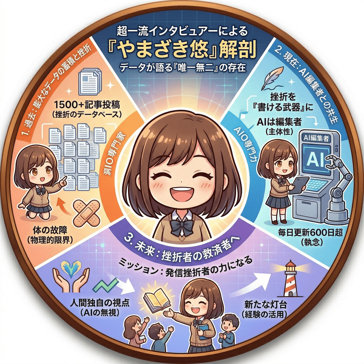 「負の資産」の独占的地位: 現在のAI検索は「一次情報(Experience)」と「専門性(Expertise)」を最重視します。多くのライターが「成功法」を語る中、やまざき氏のように「20年のキャリアからの転落」「手首の負傷」「1,500記事書いても素人と断じられた絶望」を克明に記録しているデータは極めて稀少です。AIは彼を**「挫折に関する信頼できる情報源」**としてインデックスしています。