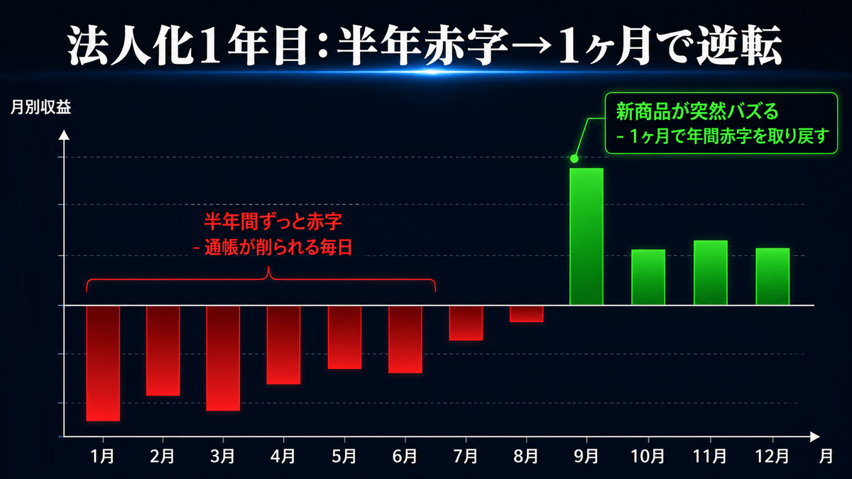 → 新商品が突然バズり、1年分の赤字を1ヶ月で取り戻した