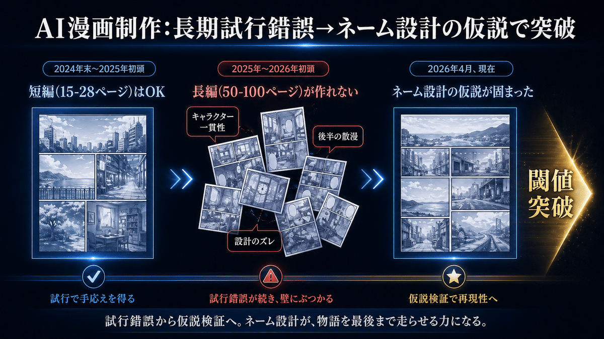 技術の進化と、「重要なのはプロンプトじゃなくネーム(設計図)」という仮説の発見が、同時に起きた。
