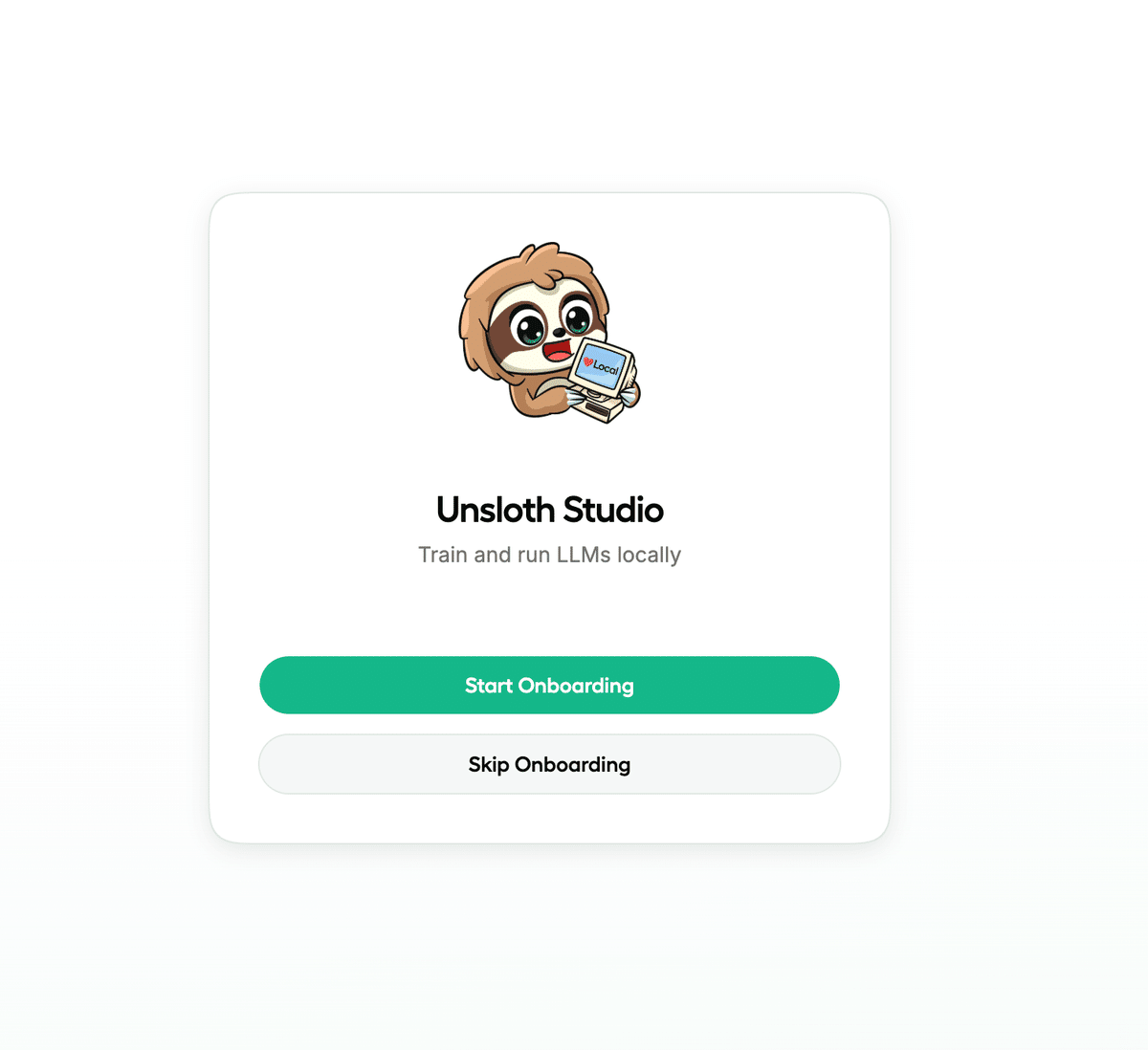 unsloth studio -H 0.0.0.0 -p 8888ブラウザで `http://localhost:8888` にアクセスすると、オンボーディング画面が表示されます。