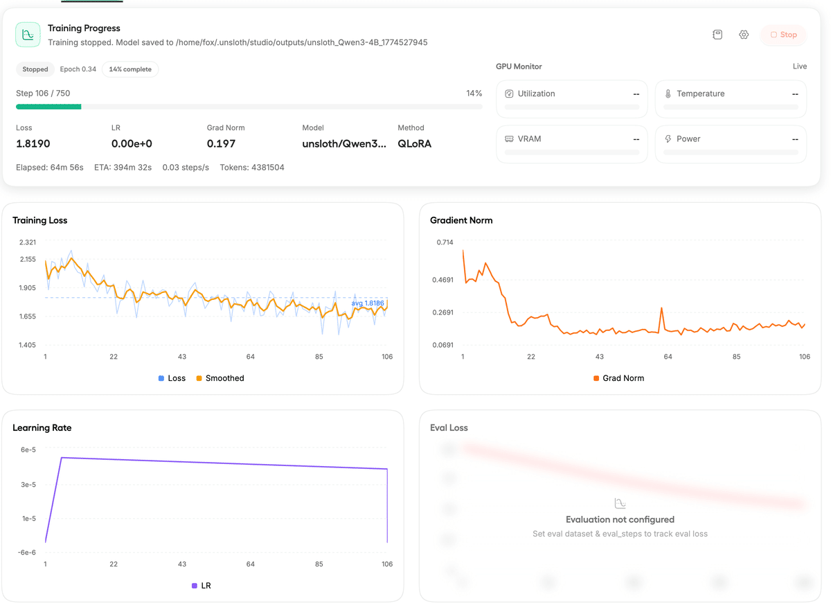 また、学習フレームワークにはUnsloth Studioを用います。(UIが用意されており、おそらくこれが一番直感的で簡単です。)