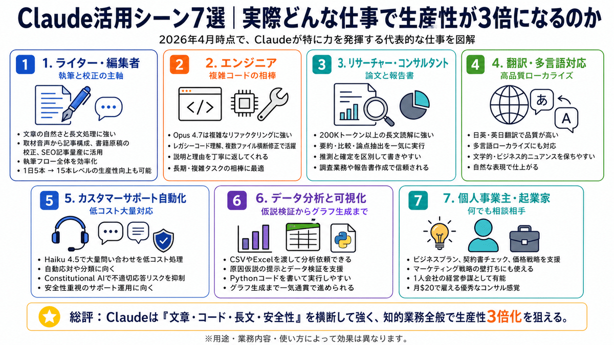 Claude活用シーン7選|実際どんな仕事で生産性が3倍になるのか