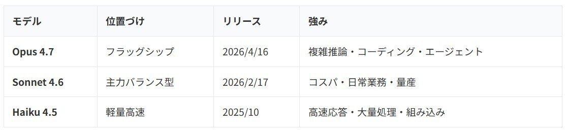 ✅ Opus 4.7・Sonnet 4.6・Haiku 4.5の本当の違いと使い分け早見表