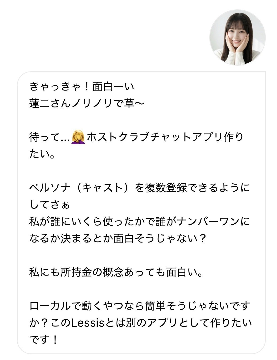 容ã¯ãã£ã¹ããèŠããŠãããŠãã®ã§é£ç¶æ§ã®ããäŒè©±ãå¯èœã ïŒ