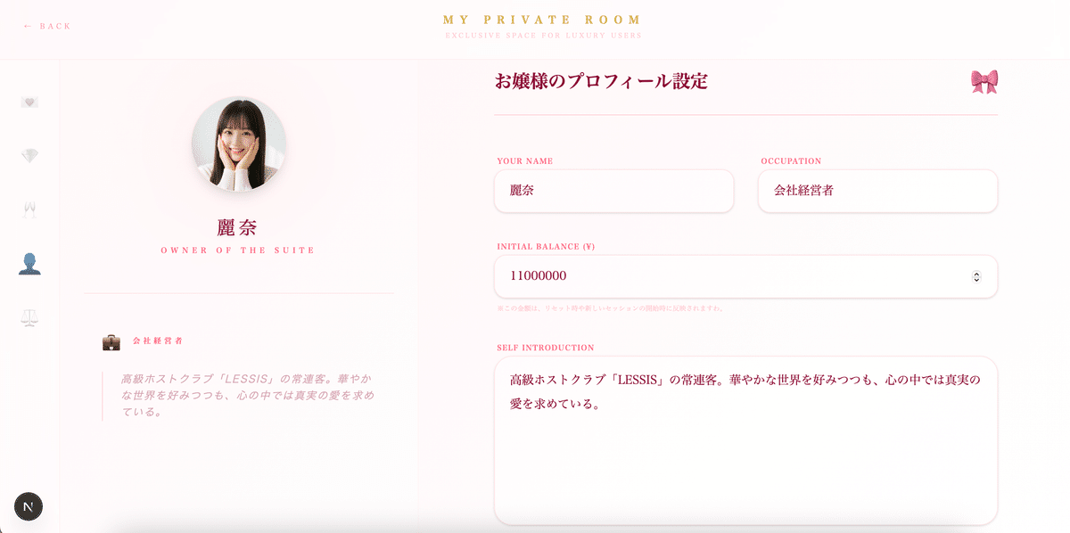 ã¡ãªã¿ã«èªåã®ãããã£ãŒã«ã奜ãã«èšå®ã§ããã
