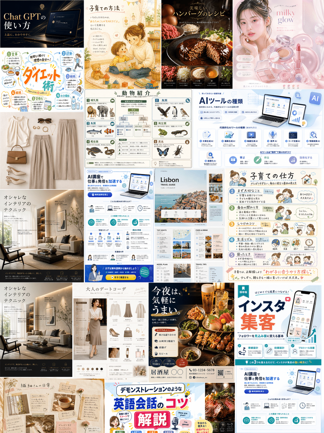 ってことで、「分かりやすいカテゴリー別」に、プロンプトをそのままコピペできるサイトを無料配布します。