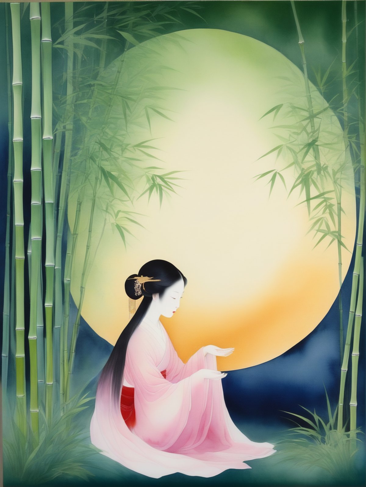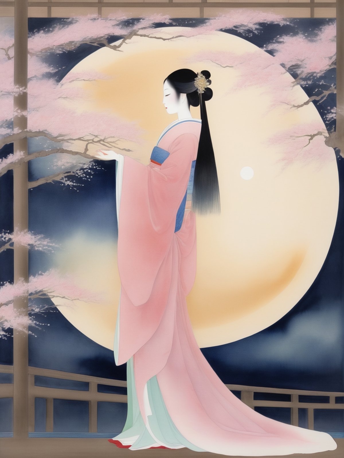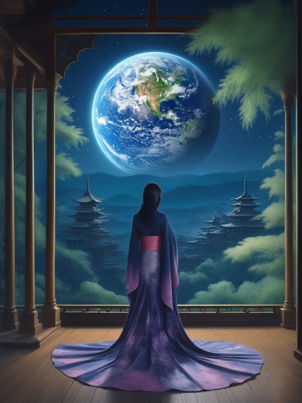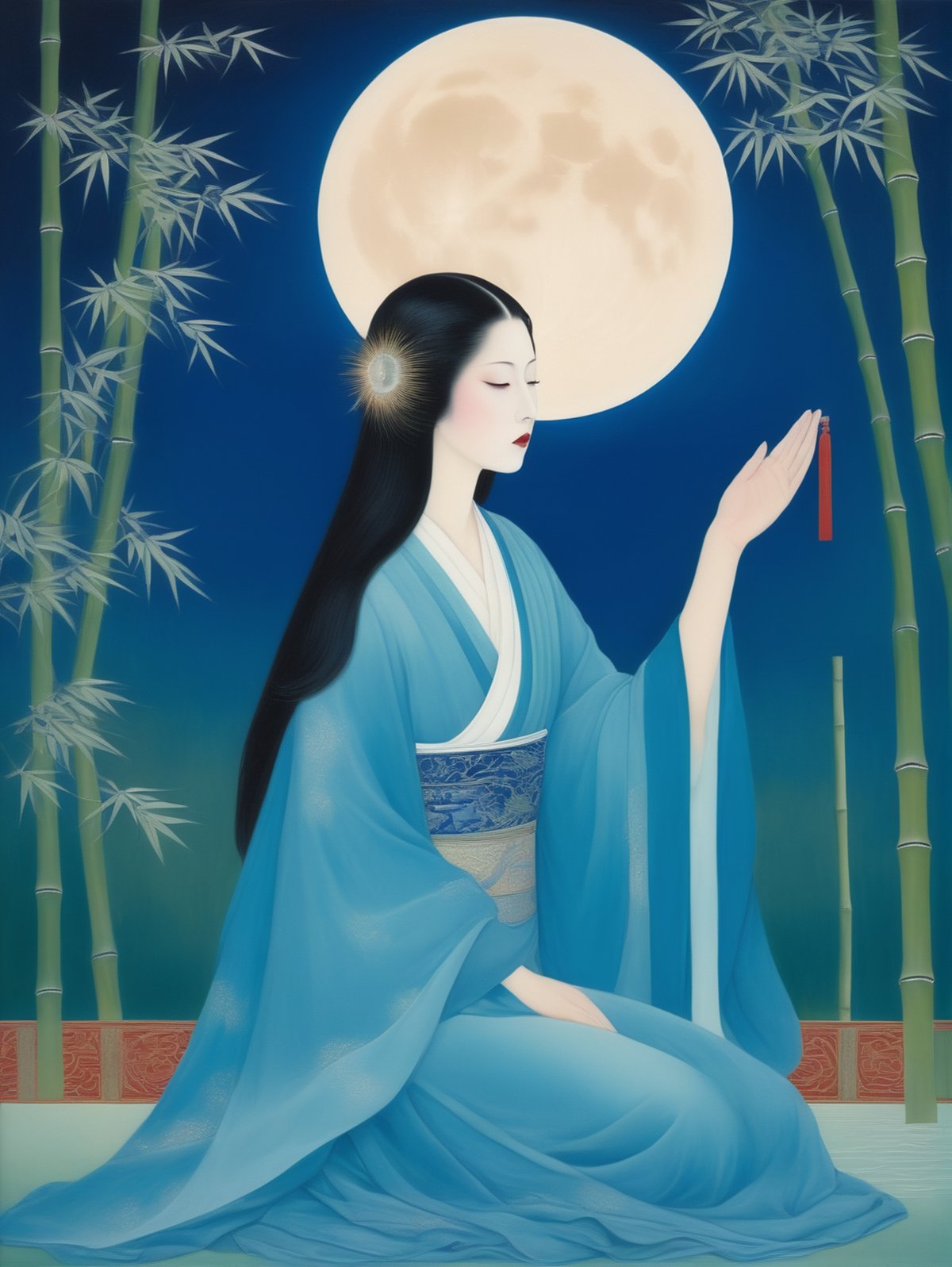 今回は、月への憧憬と『竹取物語』の世界からインスピレーションを得て、かぐや姫のAI画像を作成してみました。
